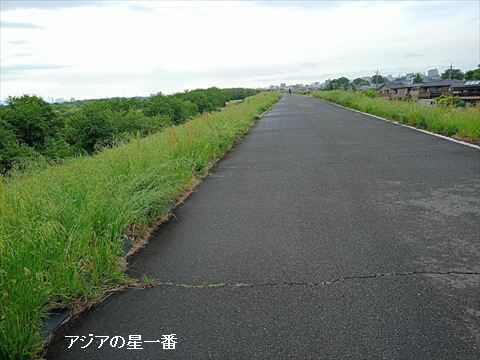 荒川の堤防の上に出ました。