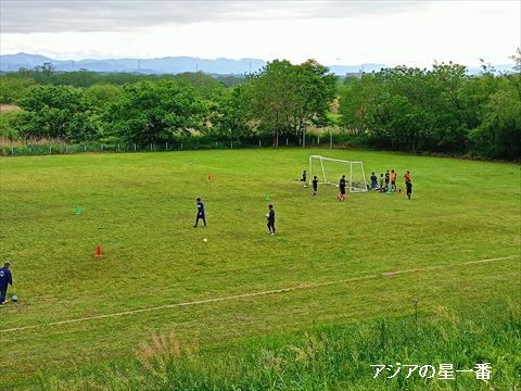 サッカーの練習をしています。