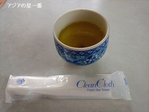 おばあちゃんが、お茶とおしぼりを出してくれましたぞ。