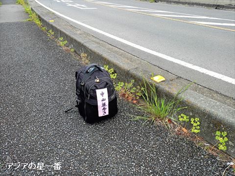 1時間10分歩いて、道路脇で休憩です。疲れる前に休むのが良いですね。