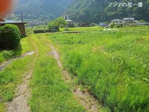 それで、どうにかどちらへ行けば良いか分かります。こんなあぜ道を
