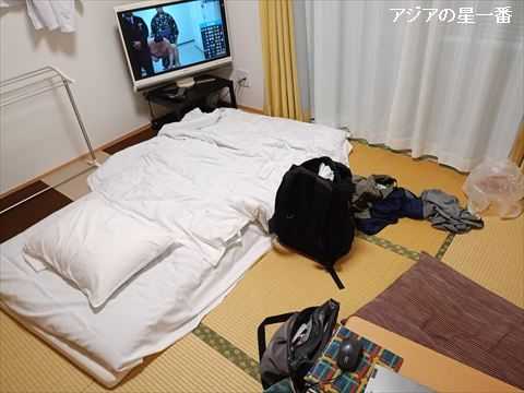 部屋は和室です。トイレもシャワーも共同です。雨で寒いですが、
