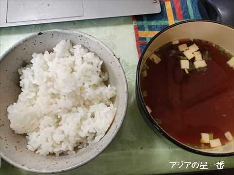 ご飯と味噌汁です。腹が減っているので、美味しいです。