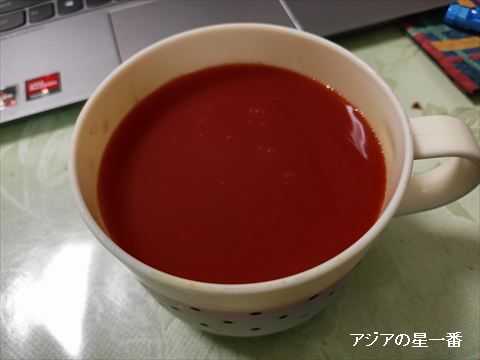 朝食は、トマトジュースに替えました。今まで、ガッツリ朝食を食べて