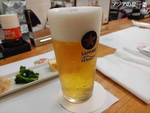 生ビールですが、量は少ないですね。すぐ飲み終わります。