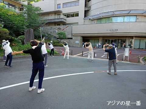 6時20分より前に着きましたが、もう体操を行っています。6時半からでは