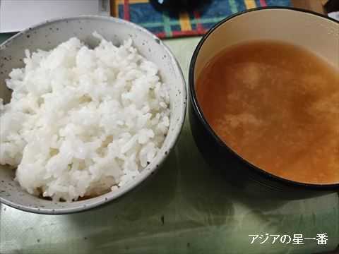 ビールもウィスキーも飲み終えて、五目飯を食べます。味噌汁も