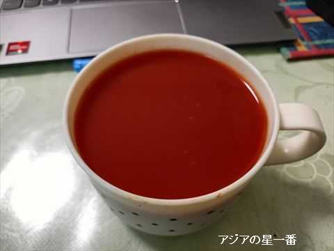 安心してトマトジュースを飲みまます。本日も陽射しが厳しそうです。