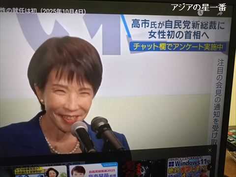 決選投票の末、初の女性総理大臣になるであろう、高市早苗さんが