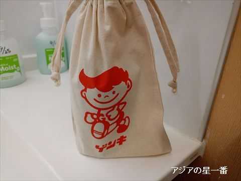お見舞いに来てくれたサヤカさんから貰った、ゲンキのバッグ、歯磨き入れに