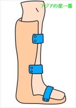 次に、右足は長下肢装具を付け、左足は、短下肢装具を付けました。