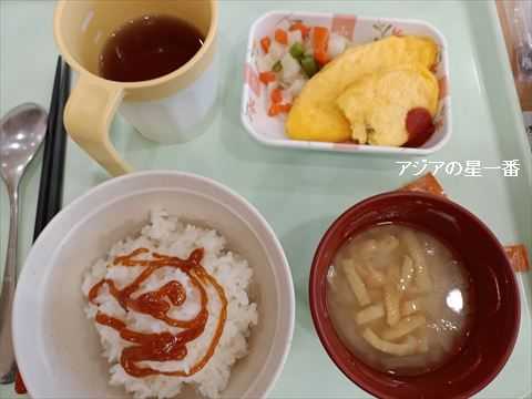 ご飯に味噌汁、玉子焼き、そしてお茶です。