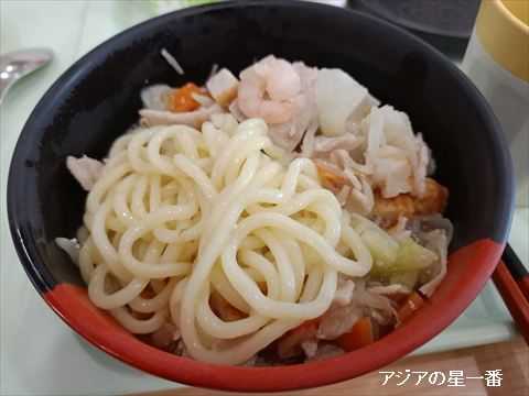うどんでした。なにうどんと言うのでしょう? エビや野菜が入っています。
