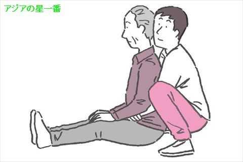 そして、支えてっ貰わないと、後ろに倒れてしまいます。腹筋が弱いです。