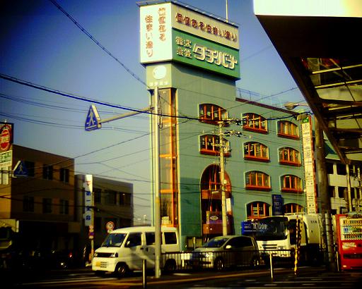 良く行く東岸和田駅の近所の風景です。どことなくレトロな雰囲気のビル・・・三角の敷地に建っているようですが、さすがに建築屋さんって感じの建物です(^^)