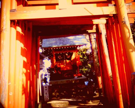 近所のお稲荷さんの鳥居朱色がきれいです近所のおばちゃんが、よく参ってはります。
