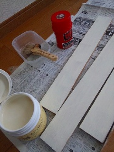 ハンドメイドの雑貨の商品撮影用に棚を製作。それに塗りました。白のペンキは少し、寒い感じがするのに対して、この色はとっても暖かい感じがして気に入りました。一応ワトコオイルを塗って、ペンキがはがれてもシャビー感が出るようにしましたよ。自然塗料バターミルクペイント(水性・乾くと耐水性) 473ml 20色(1個単位)つや消しペンキアメリカ・オールドビレッジ社製、フレンチカントリー 使ったのはブロガーさんがこぞって紹介するこのペンキです♪バターミルクペイントはミルクカゼインを主原料にする水性自然塗料ですオールドビレッジ バターミルクペイント 200ml(約1.3平米)OldVillage ButterMilk Paint 200ml- オールドビレッジ バターミルクペイント オールドビレッジ バターミルクペイント ※メーカー欠品商品あり、お急ぎの場合お問い合わせくださいバターミルクペイントはミルクカゼインを主原料にする水性自然塗料ですオールドビレッジ バターミルクペイント473ml(約3平米)
