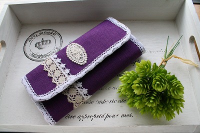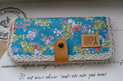こちらも、作ったお財布となります。バテンレースは手作り工房 MY mamaにて購入。ワンポイントにバテンレースは大活躍します。可愛く、華やかになりますからね。いつもはレースでぐるりとくるむのですが、今回はバイアステープに挑戦してみました。バイアスは難しい…。でも、作ってみるとレースとは違う優等生な雰囲気になりました。皮のとめ具がぐっと引き締まります。今ハンドメイド作品に皮を少し使うのがブームのようですし。皮のとめ具はAz-net手芸さんで購入。商品豊富で、他のネットショップよりこのとめ具は一番安かったです。サイズも2種類ありました。完成すると、脳内にハッピー汁が出るのでしょうか。作ることがとまりません。でも、とっても幸せなことです。これからも、どうぞわたしのハンドメイド作品見てくださいね。よろしければ、ポチッとお願いします↓にほんブログ村