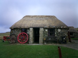 ここは昔の島にいた人々の生活の様子を描いている博物館です。見ての通り、昔の家はこういった感じの家だったのでしょう。茅葺き屋根ち石を積み重ねて作られたこの家はこの地方の伝統的家屋を再現したものです。家の中には、人々が寝ていたベッドや、料理を作る道具や、とても面白い再現です。ここは2ポンドかかるのですが、とても安く、博物館からは素敵な海が見えます☆