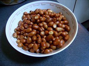 上海料理のお惣菜の代表でもあるピーナッツをフライパンで煎った料理です。↓日本でピーナッツのお惣菜と言えばピーナッツの甘煮ですが中国では、料理の中にふんだんにピーナッツが使われています。上のピーナッツを使ったお惣菜の作り方はいたって簡単!!フライパンに、少し多めの油を引いて弱火で、ピーナッツをよ~く転がして煎ります。ピーナッツの皮の色が変わって中に火が通ったな・・と思ったら火を消し、そのままにして、熱を取ります。熱が完全に冷めたら、塩をふりかけフライパンの中でピーナッツを転がし全体にまぶして出来上がり♪テーブルの料理の数が寂しいな~・・と言うときにピッタリのお惣菜です!