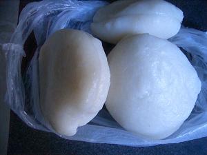 上海に来て、初めて日本の゛おもち゛と同じようなお餅を見つけました。↓お供え餅の底を合わせてまん丸にしたような感じです。境目に包丁を入れるときれいに取れます。このおもち、以外に柔らかですね・・。さっそくフライパンで焼いてお雑煮を作って、食べてみました♪味は・・日本のお餅のおいしさとはとうてい比べられませんがやはり柔らかく、もち米だけで作られてはいないようです。よって、伸びはまあまあ、ありましたがお米の粉のような味がしました。こんど中国人のお友達に中国の人がどのようにこのお餅を食べているのか聞いてみようと思っています。去年の12月のはじめに、日本のTさんが日本からいろいろ年越し用にお餅やら、つゆのだしやらお土産に持ってきていただいたおかげで今年のお正月は、日本のお餅を食べることができましたッ!Tさん、今回はタイタイはお目にかかれませんでしたがいつもいろいろなお土産を本当にありがとうございます♪この場を借りて、遅ればせながらお礼のご挨拶をさせていただきます。本年も、どうかよろしくお願い申し上げます。