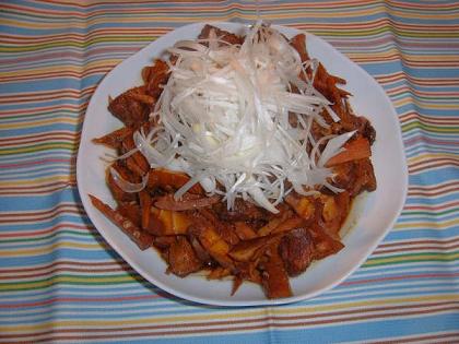 昨日の日曜日はどんよりした天気から雨が降り始めとうとう夜中まで降り続いた重い一日となりましたが今日は、スカッと晴れて思わず洗濯をしたくなる天気です♪上海では、竹の子が旬を迎えています。日本も同じかしら・・?タイタイは、母親が作る竹の子ご飯がものすごく好きで、一年で一度のこの季節を心待ちにするほどです。日本だと、竹の子は米ぬかで最初ゆでて煮物にしたり、竹の子ご飯にしたりその味を、いろいろと楽しみますが上海では、米ぬかを今まで見たことがありません。ぬかを使った料理というのは日本の漬物しかないのかな・・。上海のある日本人のご家庭で冷蔵庫に入れておいたぬかみそを中国人である家政婦さんが見て腐っていると勘違いして全て捨てられた、、と、お伺いしたことがあります。よって、日本のように米ぬかでゆでる習慣は無くそのまま油で炒めるか、中国のお醤油で煮込んだ料理が主です。市場に行くと、竹の子があちらこちらで山となって売られています。こうも竹の子を見せつけられるとタイタイの、料理の腕の鳴るのを抑えることができません、、。中国人のお友達から早速教えていただいたのが竹の子と豚肉を中国のお醤油で煮込んだ料理。↓約3時間、小さな火でコトコト煮込んで仕上げます。中国人のお友達であるUさんに「最低3時間は、煮込んでください」と、言われました。タイタイは、白髪ネギを盛って辛子を付けていただきました。味のコツは、中国の濃厚なお醤油が決めて!!中国の料理の名前で、゛紅焼○○゛と書いてあるのは全てこのお醤油を使ったものです。このお醤油、見た目は黒くてさぞ辛いだろうなと思いきやそれほどでもないんですね・・。日本のお醤油より、塩が少ない気がします。