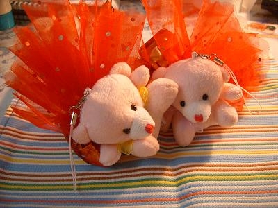 中国の人は、チョコレートが大好き。OLをしていた頃、中国に研修に行ってお土産にパンダの形をしたチョコレートをもらって食べたことがありましたがその時とは比べ物にならないくらい味が格段と美味しくなっています。中国では、特に結婚式の時来たお客様に、必ずと言っていいほどチョコレートを渡します。チョコレートが愛の象徴・・?その一つがこれ ↓かわいいでしょ!!先日、中国人のお友達のUさんが結婚式に行ったと言ってタイタイとダンナにくれました。小さなくま(?)のマスコットが背中にチョコレートを背負っています。こういうところが、中国チックとタイタイは思いますが、いかがでしょうか・・?このような雑貨の小物は材料が安くお手のものの中国ですのでいくらでも調達ができます。チョコレートは、他のお菓子に比べるとかなり高めなお値段で売られています。ものによっては、日本より高いかもしれません・・。それでも、中国の人はチョコレートには子供も、大人も目がないくらい好きなようです。