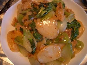 昨日のチンゲン菜を使っての料理です。↑白いものは゛ネンガオ゛といってもち米と、米の粉で作られたもの。日本では見たことはありませんがここ中国では、よく見かけます。形は、いろいろなものがあります。野菜と一緒に炒めるとこのネンガオが、ご飯の代わりとなって一度に両方食べられる料理となっています。上海では、野菜とネンガオを炒めて黒砂糖で味付けをした料理が一般的。Uさんに教えてもらった料理は塩味だけのさっぱり風・・。なので、タイタイもこれに習い旬のチンゲン菜を使って、塩味でさっぱりと仕上げてみました♪ちなみにダンナいわく「これ、おいしい!! うまいよ~!!」と、絶賛♪材料は、チンゲン菜、豚肉、ネンガオだけ。黄ニラを入れると、更においしさを増しそう♪次回はぜひ、黄ニラを入れて作ってみます!中国にお住まいの方は、ぜひトライしてみて!