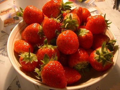タイタイは、イチゴがかなり好きです。イチゴをつぶして、少しのミルクとお砂糖を入れて食べる、、。これがたまらなく好き♪イチゴの思い出といえば、風邪を引いて寝ているとビタミンが豊富だと言って必ず家族が買ってきたものです。OLをしていた頃、社員旅行で静岡に行って石垣イチゴの、イチゴ狩りをしました。目の前は太平洋の海で、反対側はその名のとおり石垣になっていて今まで見たことのない大きなイチゴが垂れ下がって生れていたのを、よく覚えています。とても甘くて、美味しかったな~~・・。これは上海で売られているイチゴ。↓キレイなイチゴでしょ?でも中国のイチゴは、農薬がたっぷりなので中国人でも食べない人がいると聞いたことがあります。しかーしッ、並んで売られているイチゴは美味しそうなのであります。大手スーパーでは、パック入りのイチゴが売られていますが市場や、天秤売りの人達は量りで売りますのでイチゴを山済みにして売っています。あ~・・その脇を通る時のあま~い香りがタイタイを誘惑する、、、、、。罪なイチゴ・・。値段は、日本より安いです。日本の半値以下で買えます。食べ方は、つぶしたイチゴにヨーグルトをかけてお砂糖を入れて食べると、、う~ん、、美味しい♪先日、お世話になっている駐在員の奥様に教えていただきました!そのまま何も付けないで食べても甘くて美味しいです♪イチゴ本来の甘さを味わうのもいいですね!食べるときは、水にしばらく入れてよ~く洗ってから食べます。