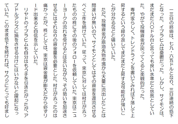 寝際に価格情報を覗いたら、じりっと高くなっていた。ドルは対ユーロで高くはなっていたが、アジア、ヨーロッパと株高だった。これが効いたのだろうか?NYMEX/WTIがバレル当り74.05ドルになっていた。 昨日の終値よりも38セント高だ。これからニューヨークへと市場の中心が移ってゆく。さて、どうなることやら。 今日はずっと外出していて、すいさっきPCに向かうことが出来ただけだ。「月の欠片」の更新が出来ず残念だった。オサマ大統領は大丈夫なのだろうか?隼人達は大統領を守れるのか?ブログ人気ランキングに参加しています。クリックよろしく アンケート、「100ドル原油時代はまた来るか?」に、ぜひ投票のほどを!http://blog.with2.net/vote/?m=v&id=17487