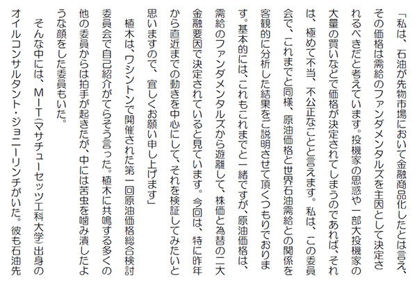 午後6時半頃に価格情報を覗いたら、原油価格が更に上昇していた。これはひどい。NYMEX/WTIが64セント高のバレル当り85.81ドルになっていた。 本当にひどい。物が余っているのに価格が上昇する、昨年来のこの珍現象は笑って済ませる問題ではないだろう。 08年の場合には、サブプライムで破綻しそうになって、大量の資金が原油に流れ込んだ。そして、150ドル近い水準にまで上昇した。それまでの経緯が奮っている。 あのゴールドマンサックスが04年から徐々に原油価格見通しを引き上げ、上昇を続けた時は、その見通しが良く当ると評判となった。この150ドルもそうだった。08年の年末までに149ドルと予測していたのだった。 しかし、それは良く考えてみれば、自分達が投機で儲けるための見通しだから、それで当ったと言っても空寒いものがある。それでは、その後の暴落は見通していたかと言うとそんなことはない。 リーマンショックでそれどころでは無くなったのだ。いわば、暴落して損をする前に資金を引き上げていたのだろう。いや、引き上げざるを得なかったのだろう。 誰かが大損をした分けだ。それだけではない。原油超高価格の時に、例えば、10年6月渡し、即ち現在の期近物を先物で購入したものは恐らく150ドル以上で買った筈だ。それを整理しなけれならないとしたら・・・ ようやく、今は09年の30ドル台から80ドル台へと上昇したとしても、そう考えるだけでぞっとする。投機は自分の責任でとは言え、辛い人もいるだろう。 投機とは、そんなものだとは言え、そこにゴールドマンサックスの無責任さがあったとしたら、それはやはり問題だろう。 物は違うがそれがサブプライムでも発生したのではないか?それを今アメリカでは提訴したということだろう。どうなるか?注目だ。それが、今の原油価格暴騰にも繋がっている。 投機は「行き過ぎるもの」とは言っても、度を超してはいけないと思う。本当に、ひどい仕掛けには歯止めをかけないと、先物事態の信頼を無くすことになる。好い加減にしろ、と言いたい。ブログ人気ランキングに参加しています。クリックよろしく アンケート、「100ドル原油時代はまた来るか?」に、ぜひ投票のほどを! http://blog.with2.net/vote/?m=v&id=17487