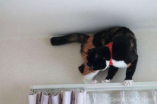 三寒四温とは良く言ったもので、暖かくなったと思ったら寒くなったりしますが、確実に季節は春に向かっている事を感じます。昨日、ブログ用にチョコを撮ろうとすると見当たらない。名前を呼ぶと頭の上の方から返事が聞こえる。声のする方向を見ると・・・何とカーテンレールの上にいるではないですか!なぜそんな所に登ったのか?何が目的で登ったのか分かりません。まあ、聞いた所で答えは「ニャー」なので聞くだけ無駄でしょう。この後、彼女は狭いカーテンレールの上で器用に方向を変えて降りてきました。それっ!ジャーンプ!着地成功!どうも彼女はカーテンレールの上に登る事を覚えたようです。今までは本棚の上までだったのが、更に上を目指したのでしょうか?嫁さんに見つかって「カーテンが壊れる!」と怒られて慌てて床まで飛び降りたのには驚きました。2mを超える高さから飛び降りる勇気に感服すると共に、今更ながら猫の身体能力の高さを再確認させられました。