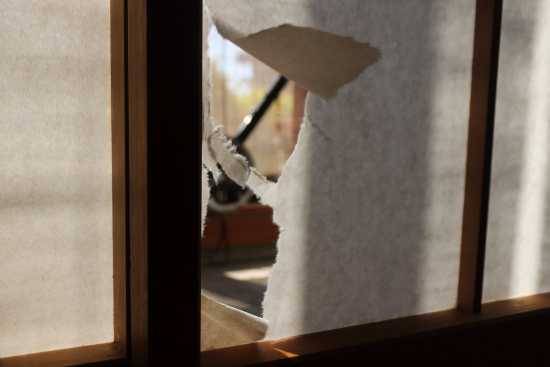 昨日、階段を下りて行くと脱兎のごとく走り去る二匹の猫とすれ違った何かと思って出てきた所を覗いてみると・・・なんと障子が破られていた犯人は誰だ、こんな事をする奴は絶対しかいない!「チッ、バレちまったか」彼女は仏壇の供え物を盗み食いする為に障子を破り入り込んだのであったさらに二匹の出てきた所をよく見ると喰いちぎられたスリッパが落ちていたこれをやった犯人はこいつだ!「えっ、僕ですか?だぶん違うと思います・・・」そんなこと言ったって無駄だぞ、証拠はそろっているんだ、観念しろ!猫に反省なんて言葉はないので説教しても無駄なことなので侵入防止対策を強化いたしました