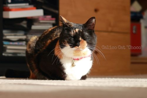 その日の光を浴びて寛いでいるチョコにカメラを向けると