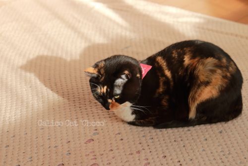 チョコは部屋に差し込む日を浴びてほっこりしております。