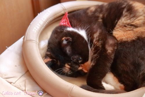 昔、嫁さんの車に使っていたハンドルカバーの中で寝ておりました。