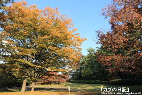 残念ながらこの公園にはモミジが無いので赤が無い。