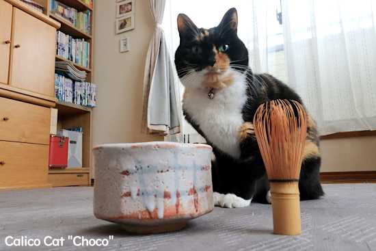 「今度はお点前を覚えようね」」と妻はチョコに茶道を教えるつもりの