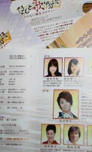 今年の紅白歌合戦の観覧応募はがき抽選会についてNHKの公式サイトに載ってました。応募総数1,264,923枚当選枚数1,234枚当選倍率1,025倍なんなんですか このものすごい数は・・これまでの最高が70万くらいだったのを軽く越えてついにミリオン!!嵐と井上真央人気ですかね・・?今や使うことがめったにない往復はがきが売れまくって郵便局も嬉しかったろう!?第62回 NHK紅白歌合戦紅白は東京なので当たっても大晦日に行くことはできないので応募してないんですが昨夜熊本でNHKの歌番組の公開収録がありまして観覧券が当たったんで母が友人と行ってきたんです。K-POPいーえ、熊本POP!?NHK熊本で「心に残る熊本の歌」「熊本ゆかりの歌」を思い出とともに募集。これまで夕方のニュース内でエピソードともに紹介されてきた歌をまとめて オーケストラの演奏つきのコンサート!「くまもと歌物語音楽祭~わが心の熊本メロディー~」12月16日の夜に熊本で放送予定。もしかしたら他の地域でもいつか放送されるかもしれません。ちゃんとプログラムも用意されてるんですね~。あ、司会 福田沙紀だ。これは生で見たかったかも!?さて感想を母に聞いてみると「長かった~」え?そんなに長時間撮影?2時間くらいじゃないの?「行列がよ~人が多くて 入るまでが大変!!」あ~そうですね、のど自慢とか笑点とか公開番組の客席って全部埋まって満員御礼ですからね~。みんないい席取りたくて早くから並ぶんだ!?ん、苦労して入場して聴く歌はまた格別!?では、今夜最後はコンサートでも歌われた熊本最強の泣ける歌、いや泣いてしまって歌えなくなるこの名曲を聞きながらお別れです。【送料無料】★お買得!【島津亜矢-2】Best・BEST 全16曲価格:1,490円(税込、送料込)カレンダー 楽天市場店