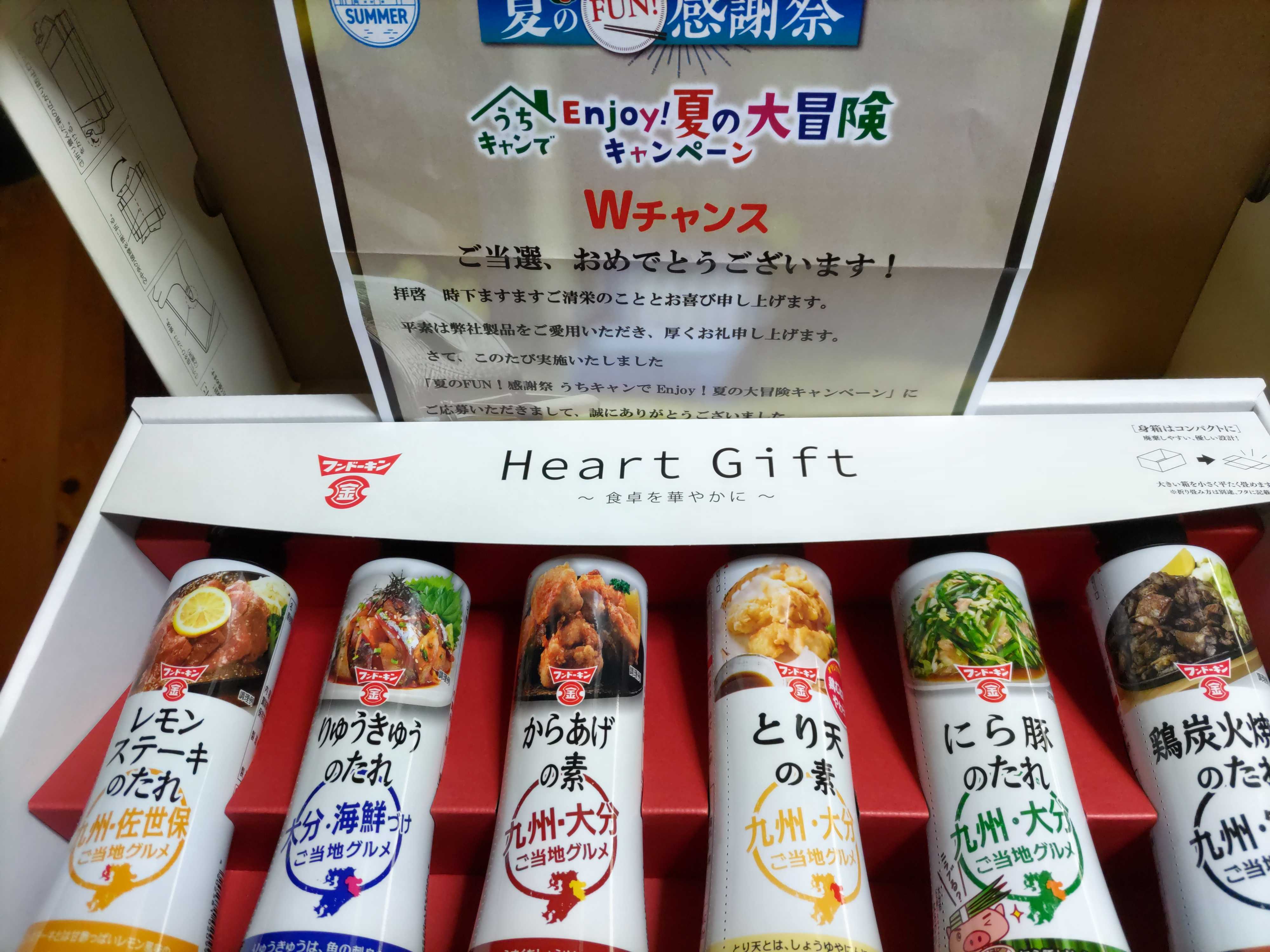 8月28日夜に放送された「所さん!事件ですよ」ふだんこの時間帯はテレビ見てないんだけど藤子F不二雄ドラマに続いて始まったのでながめてると懸賞特集の回でした。NHK 総合 08/28 23:00 所さん!事件ですよ マイホームも宇宙旅行も!? 令和の懸賞ブームを大調査 📱NHKプラスで配信予定💻 #nhkgtv #所ジョージ https://t.co/01R6OlMwve— NHK総合 (@NHK_GTV) August 28, 2025 懸賞ブームの歴史、当たりやすくするテクニック、スーパーの無料バスツアーに注意などほとんどは、懸賞ファンにとってはおなじみのことばかりでしたが宇宙旅行の話が面白かった。宇宙旅行が賞品の懸賞と言えば、「ペプシ」が有名であれは無料招待でしたが、実現せず当せん者は。旅行にかかる金額(1千万?)をすぐもらうか、宇宙旅行へ行けるまでずっと待つか選べた、という結末だったような(よく覚えていない)今回、番組に出てきたのは2005年 ヴァージン・ギャラクティック社の「宇宙旅行に行ける権利」が当たった唯一の日本人。当たったの「権利」なので旅行にかかる費用は自腹。いわば「抽せん販売」でそのお値段、2300万円!を払ったものの延期に次ぐ延期で、20年が経過。それでも待ち続けついには宇宙関連のビジネスを立ち上げたという、懸賞が人生を変えたドラマみたいな本当の話。いつかそんなスケールのでかいものも当てたいものです。でもまずは身近なことから。フンドーキン夏のFUN!感謝祭Wチャンスでご当地シリーズ詰め合わせ、当せんです。「りゅうきゅうのたれ」「にら焼のたれ」など、ターゲットを搾りこみすぎ!?お店でもあまり見かけたことのないようなセットでした。1000円以上の購入のレシートが条件で、この「1000円以上」という設定で応募が限られ当たりやすいだろうと狙っていたのでした。さて、大雨で押し寄せた泥の片づけで休業となったブログからの復活カウントダウンも今回で最後。PayPayギフト早い者勝ち4周目のヒント!そのカウントダウンこそがヒント今日は・・そしてこのブログのタイトルは・・間違えやすいフンドーキンとフンドーダイのように似ている数字とアルファベット獲得された方はコメント一言お願いします。と、今日は、つく日だし。