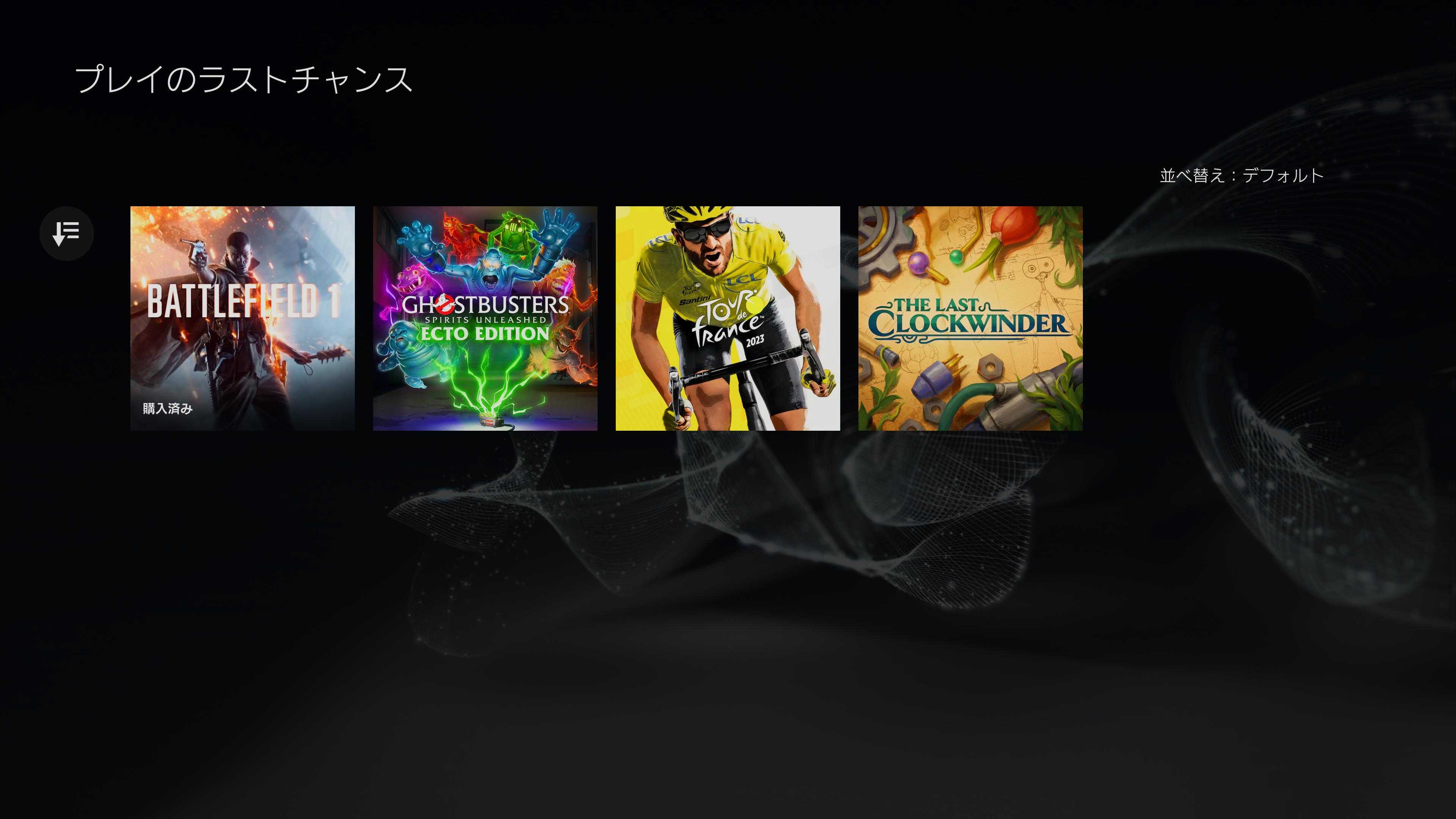 PlayStation Plusゲームカタログで近日提供が終了するタイトルの一覧「プレイのラストチャンス」で2025年10月終了分の発表がありました。2025年10月21日に終了予定バトルフィールド 1Ghostbusters: Spirits UnleashedTour de France 2023ザ ラスト クロックワインダー4タイトルと少ないのですが追加されることもあるので油断はできません。期日を過ぎるとダウンロード済みでもカタログからは遊べなくなりますので気になるものは遊んでおきましょう。PlayStation5 “Ghost of Yotei“ ゴールド リミテッドエディション楽天で購入また今日はシステムとコントローラーのアップデートもありさらにプレゼントも!アンティル・ドーンのキャンペーンでアバターがもらえます。下のキャンペーンページにPSNでサインインすると「サインアップ」という入り口が出てきますので、そこをクリックしてエントリー完了。もらえるのは12月になりそうです(たぶん忘れてる‥)映画「#アンティル・ドーン」のデジタル配信開始を記念して、 PSN®︎アバタープレゼントキャンペーンを開催!応募方法🔹PS5®︎またはPS4®︎で「SONY PICTURES CORE」アプリを入手🔹キャンペーンページから応募🔹限定アバターセットをゲット!詳しくはこちら⇒ https://t.co/HJDdYIHkTo pic.twitter.com/MwtI15luwY— プレイステーション公式 (@PlayStation_jp) September 17, 2025と、PLAY! PLAY! PLAY!のアンケートでプレイステーション ストアカードのコード 1,100円分が20人に当たります。PLAY! PLAY! PLAY! トワと神樹の祈り子たち~2025年9月28日23:59プレイステーション ストアチケット 1,100円 ※300ポイントまでご利用可楽天で購入楽天ブックス レイトサマーキャンペーン!エントリーでゲームソフトがポイント最大10倍~9月27日(土)01:59 まで