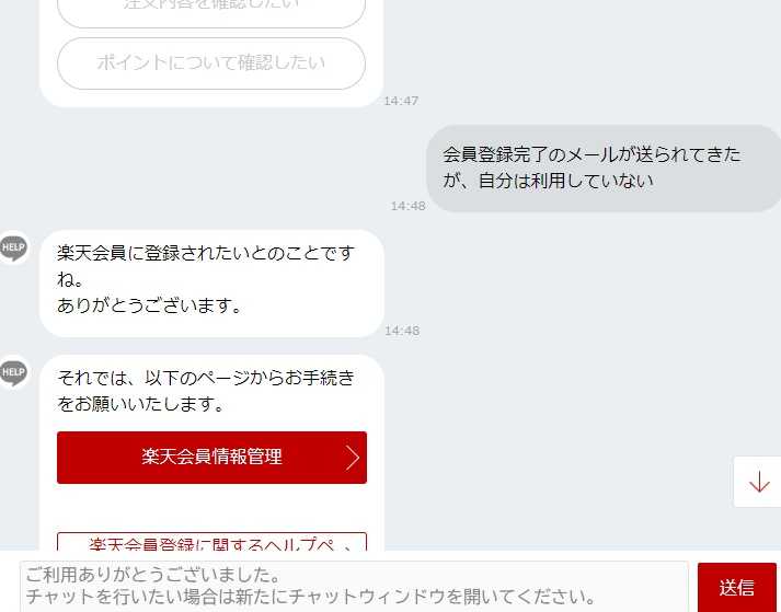 楽天を利用していて、わからないことなど問い合わせしたい時に困ったことはありませんか。まずはヘルプの「よくある質問」から探すのですが答えが見当たらないならばチャットで尋ねよう、という時…チャットの問合わせ先がわからねえ!!楽天市場 ヘルプ・お問い合わせそれは先日突然「楽天会員に登録ありがとうございます」とのメールが送られてきて。・・いや、もうとっくに会員なんだけど・・楽天に登録してあるメールとは別の懸賞応募専用に使っているメールに登録完了のお知らせが来たのです。最初は、ニセモノ、詐欺メールかと思ったのですがどうにも本物っぽい。誰かがワタシになりすまして会員登録した‥??これを問い合わせたいのですが「勝手に会員登録されたみたい、どうすれば?」自動返答「楽天会員に登録されたいのですね、ありがとうございます、登録はこちら」おい!!!寝ぼけてんの!?書き方を変えても同じことの繰り返し。なのでチャットで問い合わせしたいのに「よくある質問で探してください」しか出てこない。どうやったらチャットでつながるんだ?あコメント入力欄に「チャット」と入力したらチャット接続画面に変わりました・・・いや、それなら先にそう言ってくれ!!勝手に会員登録事件がどうなったかはまた次回。キャンペーン情報ちょっと期間中1日1回エントリー【Rakuten PLAY】(エントリーするだけ!)楽天ポイント2万ポイントを抽選で1名様にプレゼントキャンペーン(2025年9月度)~2025/9/22(月)11:59スタンプためるとポイントやお買いものパンダタオルかけがもらえます楽天食いしんぼう祭 スタンプを集めて豪華景品がもらえるスタンプラリーキャンペーン~2025年10月17日(金)09:59お買いものパンダのしっぽが当たる!//#アニメお買いものパンダ💝プレゼントキャンペーン開始!💝\\#お買いものパンダ のあの【ふりふりしっぽ】が商品化!🎺応募いただいた方から抽選で《5名様》にプレゼント🎁✅応募方法1️⃣@a_okaimonopanda をフォロー2️⃣この投稿をリポスト🔃⚠️9/19(金)23:59まで⏰… pic.twitter.com/bNZTx4178p— アニメ『お買いものパンダ!』公式 (@a_okaimonopanda) September 12, 2025