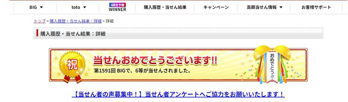 もし当たれば、くじ20枚(6000円相当)がもらえるので、億の夢が継続するのだ!
