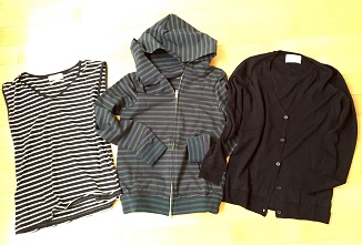 先日春もの、スウェットを購入したミラ オーウェンでセールでもお買いものしました。3点とも半額でかなりお買い得でした。ニットとパーカーは秋ものですが春先まで着られそうです。パーカーは私はグリーンを選んだのですがオレンジのマルチカラーやワインもあってオレンジだとかなり春らしい感じでした。生地がハリと厚みのあるしっかりとしたコットンなので裏毛など真冬用のパーカーとか同じコットンでもペラペラに薄い夏用のとは違って秋と春用という感じです。ニットはブラックにしか見えないんですが一応ネイビーです。かなり濃いネイビーで写真でもブラックに見えるんですが実際手にとっていてもまっ黒なものと並べないとブラックに見えるくらいの濃紺です。フェイクのツインニットのデザインになっていて1枚でスッキリ着られるけど見た目はツインニットを重ね着しているように見えます。ウール100パーセントで暖かいですが薄手なので厚着はしたくないけどまだ寒い春先に重宝しそうです。ノースリーブのボーダーカットソーはコットンでネイビー×オフホワイト。何枚あってもいいタンクトップですが肩部分が広くて下着が見える心配がない私の好みのカタチ。こういうのが1番重宝するんですよね。3点ともシルエットも着心地も良くてとってもお買い得だったと思います。ミラ オーウェンはもともとリーズナブルなので半額だとかなりお安いです。それぞれ税込でタンクトップ¥2,268、パーカー¥3,672、フェイクカーディガン¥4,752着画はパーカーを先日楽天で購入したドミンゴブロカントの迷彩スカートと合わせましたがこちらのスカート、とてもよかったです。迷彩柄といってもリーフ柄であまり迷彩という感じがせず大人っぽい雰囲気です。ハリのあるしっかりしたコットン地でトップスのニット&パーカー、足元のタイツ&ブーツをTシャツ&サンダルに変えれば真夏も全然いける感じです。今の時期から夏まで長く着られるスカートだと思います。