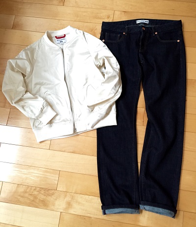 ユニクロのイネス・ド・ラ・フレサンジュとのコラボアイテム、1週間ほど前、夏の新作が販売開始になりましたが、ちょうど販売開始日当日に、私は春のアイテムを今頃買い足ししております。余談ですが、イネス・ド・ラ・フレサンジュと目にするたびオスカル・フランソワ・ド・ジャルジェ、とかハンス・アクセル・フォン・フェルゼンとか連想して、悪役のジャンヌ・バロア・ド・ラ・モットなんてのまで空で言える自分に驚く(笑)別にベルばらファンってわけでもないのに子供のころの脳って本当にすごいんだなと、最近同年代の友人との会話に「あれよ、あれ、名前ド忘れしちゃった、なんていったっけ?」といったフレーズが頻繁に出る今日このごろ、特に思います。購入したのはこちらの2点↓セルビッジデニムジーンズのネイビーと、ブルゾンのホワイトです。どちらも春の新作が出て、とりあえずパーカーとスウェットを買ったときこれも、と思ったものだったんですがパーカーとスウェットはすぐに着るけどデニムジーンズはまだしばらくコーデュロイパンツ中心だろうし、ブルゾンも着るのはまだまだ後だろうし、というのもあり、「そのうち絶対限定価格になって値下がりするわけだし!」と思ってすぐ着ないものまで定価でまとめ買いすることはないなと思ったんです。でも、限定価格にならないまま夏の新作が出て、ちょうど販売開始日にユニクロの入っている近所のショッピングビルに行ったのでちょうどいいからと見によったら2つとも限定価格どころかサイズも色もほとんどない状態でした。セルビッチデニムはホワイトとブルーは各サイズ若干残っていたのですが私が欲しいネイビーはほとんどのサイズが完売な中、たまたま合うサイズが残り1本でギリギリ!危なかったです~イネスのパンツは秋のアイテムで買ったブラックのコーデュロイパンツがすごく良くてこの秋冬、本当に重宝してヘビロテしました。全体的なラインがとてもキレイで脚がすら~っと長く見えるんですよね。このデニムも本当にラインがキレイ。膝下がまっすぐ長く見えます。スキニーでもボーイフレンドでもない、大人でも穿けるキレイめジーンズ、さすがイネスという感じです。ブルゾンはネイビーが1番人気、次がブラック、ホワイトは1番人気がなかったようですが私が欲しかったのは春にベージュやネイビーのパーカーと重ね着したかったのでホワイト。(雑誌で見た春のコーディネートで、ベージュのパーカーにホワイトのこういう感じのブルゾンを重ね着していたのがとても素敵で・・)近所のリアル店ではすべて完売だったものの試着はしておいたしオンラインショップにホワイトだけは各サイズ残っていたのでSサイズを購入。オンラインショップにたくさん入っているレビューは「小さめを買ってコンパクトに着るのがいいと思う」というコメントがすごく多いのですがこのジャケットは確かにその通りでいつもMサイズの私もSです。こちら、同じイネスのネイビーのパーカーに重ねていますが↓ブルゾンはSでもパーカーはMです。買ったのはこの2点ですが、せっかくだから夏の新作も気になるもの全部試着だけはしてきました。ジム通いとか近所用の普段着にぴったりと思ったのはチェックギャザースカート。薄くて涼しげで丈も長くていいですが、透けるのでクルマでジムに行くくらいなら重宝しそうですが電車で都心まで外出というのにはペチコート必須ですね。今買わなくてもこれは限定価格になりそうですし(笑)私は普段着として着るもの前提に選んでいるのでチェックスカートのほうが普段着向きだなと、スルーしそうになったネイビーのコットンギャザースカート、これが試着してみたらかなり好みだったのでこっちにするかも。あと、全くスルーしていたネイビーのミリタリージャケット、これが着てみたらかなり良くて、LLビーンで春に着ようとブルゾンパーカーを買ったばかりなのに思わず買いそうに・・・・(でもこれもたくさん残っているの限定価格になるかもとひそかに期待 笑)イネスのものって事前に画像で見てこれがいいかも!と思ってたものと全くスルーしていたものとが試着すると全くイメージが違ったり似合う似合わないが自分で思っていたのと違ったりするのでリアル店で試着するのが無難かなと思います。
