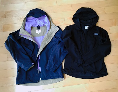 旅行の帰りに寄った御殿場プレミアムアウトレットでエーグルとノースフェイスでマウンテンパーカーを買いました。左がエーグルで右がノースフェイス、エーグルのほうは地厚で裏地付きで冬まで着られるタイプ、ネイビーにパープルの裏地がオシャレなのが気に入ってこの色にしましたが、春先にミラオーウェンでマウンテンパーカーを買ったときにカーキとネイビーでさんざん迷ったので今回買うなら色はネイビーが第一希望でした。いろんな色がそろっていて半額で出ていましたが裏地との組み合わせが1番気に入ったのがこのネイビー×パープルで購入予定の色が1番好みでよかったです。(そうじゃないと半額とお得なアウトレットでは別の色を買ってしまう可能性大・・・)ノースフェイスは単衣で薄地、梅雨の時期レインコートとして使えそうなタイプです。軽くて薄いのでたたむとものすごく小さくなって便利です。雨の日用にレインコートが欲しいなと何回か購入もしましたが、冬でも夏でも、よっぽどのドシャ降りでもない限りロング丈のレインコートって持っていても着ないんですよね。冬場はロング丈のダウンかトレンチが充分レインコートとして使えるし、暑い季節はよっぽどのことじゃないと着ない。。撥水加工のパーカーやナイロンジャケット等で済ませることがほとんどで、この春はミラオーウェンのカーキのが雨の日すごく便利だったのでアウトレットに行った機会に、アウトドアブランドのしっかりしたマウンテンパーカーを秋冬、春夏に使えそうなのを1枚ずつ購入しました