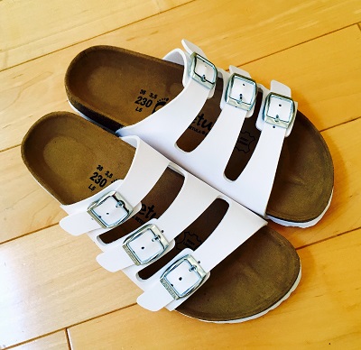 普段使いのサンダルにビルケンシュトックのサンダルを買いました。Yellow夏場普段使いに履いているのは歩きながらエクササイズもできるというフィットフロップのサンダルですが、(でも、かなり楽な履き心地で歩きやすいのでエクササイズしている感覚はありませんが・・)レザーなので雨の日は履けないのとトングタイプなので長く歩く外出の時はやはり指の股が痛くなるかも?という不安がぬぐえず(トングタイプ、本来は苦手なんです)スーパーへの買い物とか駅前への用たしとかジムとか、専ら近所限定です。今回買ったのはもろ健康サンダルって感じなのでトングタイプのように長く歩くと指の股が・・・というような不安もないし合成皮革なので雨の日でも履けるのでフィットフロップとこれで普段使いは万全か?(笑)色はフィットフロップがブラウンレザーなのでホワイトにしました。スニーカーの流行も若くない身にはありがたいですが「フットベッドサンダル」とかの流行もありがたい(笑)フットベッドサンダルとかいっても、つまり健康サンダルのことですよね?