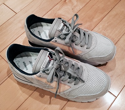 年とともにハイヒールが履けなくなってきた身にとってスニーカーの流行はありがたい限り。長年ジムに通っていて、エアロビクスやランニング用のフィットネスシューズ、つまり、出来うる限り動きやすく設計された高機能スニーカーのようなものですが靴を履くとなるとそういうスニーカーを履いている時間のほうが圧倒的に多い身、ジム以外の外出で、オシャレさはあれど高機能スニーカーに比べたら格段に履き心地の劣る他の靴を履くたび、「あぁ~ジム靴のままどこへでも行けたらいいのに」といつも思っていました。流行のおかげて昔だったら合わせないような服装でも足元はスニーカーでOKな感じなのがいいですよね。ジムに入会したころ、ランニングマシーンで走るつもりで購入したランニングシューズ。すぐにエアロビクスやダンスといったスタジオレッスンばかりになってしまい、マシントレーニングのエリアには足を踏み入れることもなかったのでそのままタウン用にして履いておりましたがさすがにくたびれてきたので(ランニング、エアロビクス、ダンス、それぞれ違うんです)この春から用に久々にスニーカー購入です。今までのランニングシュースがニューバランスのですごく歩き易いしなによりニューバランス、すごく流行っているので他のブランドで探すのも面倒だし、と、また同じニューバランスにしようかなと思ったのですが先日スウェットを購入したミラ オーウェン、スニーカーもいくつかディスプレイされていて、中に春らしい淡い色合いで素敵なスニーカーがあったのでそれにしました。ミラ オーウェンとブルックスのコラボとのこと。ブルックス、アメリカのランニングシューズのブランドで、アメリカではランニングブランドとしてシェア1位とのことお店のスタッフの方が説明してくださいましたが知らない・・ニューバランス、ナイキ、アディダス、プーマ、コンバースくらいは知っておりますが・・・ランニングをする人なら知っているのかも?ということでありがたみが今一つわからない私で申し訳ないのですがでも履き心地の素晴らしさはよくわかります!軽くてフィットしてクッション性能良く、ほんっとうに楽!!いくらでも歩けそうです。それに履いてみると足元が重くならずオシャレ薄いグレーと薄いピンク、ネイビーの3色で全体的に淡いトーンで柔らかな雰囲気なのがすごく素敵で気に入っています。グレー、ネイビー、グレー×ネイビーと靴紐が3種類ついています。3つ分の写真に撮るつもりでしたがグレーからネイビーへつけかえてみたところで、めんどくさいのでグレー×ネイビーは省略(笑)