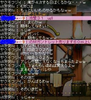 どうも!今日は昨日のジイへのプレゼント編のオマケ的なものですねオマケですオマケなんですあくまでもオマケ…要するに短いかも。ええ、短いかもしれませんまぁそんなこんなでインするとジイが登場で、チャットとかしてましたこんな感じで@20ねぇ…1~20とは訳が違いますからね…まぁヤツなら必ずやるでしょう多分120か…てか暗殺1Gって…高くない!?フリマでも滅多に見かけないし…1Gって…どんくらいのレベルならそんな大金もってるんだろうね私が1Gを手にする日は遠いという事は分かりますがね1G…1Mが1,000,000その1000倍だったと思うので1,000,000,000になるんじゃないでしょうか?要するに10億ですね高いーーーーーーーーーーーーーーーーーーーーなめんな!庶民の金銭感覚なめんな!10億とか…買えなーなまず店に置いてないでしょうあっても買えませんって…ま、そんなこんなであの時間がやってまいりました!れっつノグチたいむ!まぁノグチが始まったんですよすると案の定ノグチ登場俺大興奮!こんな感じ(笑)いやいや…やばいってノグチ…面白すぎるよノグチ…やばいよノグチ…まぁこの日はノグチの登場は一回だけでしたが十分だよ…十分すぎるよノグチ…結構稀なんですよねーてかジイはつまらないとおっしゃってますがアレは照れ隠しでしょう(意味不)で終わったあとのチャットがジイよ……まぁ暇だったのでこれで退散で今日は終了では~ 神だよノグチ…