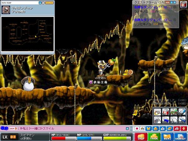 こんんんんんんんんにちは疾風です今日メイポですタイトルについては…後に分かりますという訳で早速メイポ------------------------------------------------------------今日はカニングへヤツを狩りにきましたそう、今まさに地球(メイプル)を乗っ取ろうとしているエイリアンを狩りにきましたコイツねえ?何故に!?いや、普通にクエ消化の為にていうかよく見るとグロ…なんというか…Gを彷彿とさせる気がする僕だけでしょうかね?でしょうねなんというか、グロつながりで。てか上の画像を10秒以上見て何も感じない人は勇者じゃないかな?(そんな勇者…)なんかグロくないかな?内臓的な意味で(ゲームのキャラ相手にそんな事を考えるのか)なんというかだんだん内臓に見えてくる…末期ですね というかエイリアンの触手とか結構必要なのに生息地少ないていうか個体数が少ない地球防衛軍の所みたいにたくさん沸いてりゃいいのに…アレもエイリアン属なのに…しかも数少ないのにあまり触手ドロップしないっていう…メンドクセ(ノД`) でまぁ必要な数集めてさっさと退散でまぁ何を血迷ったか狩り場1へ何しにいったのかは覚えてませんでまぁデンデンらをゲシゲシ狩っていると暇人が暇人が現れましたいつもはルディで狩っているのにこんな遠い所に安易に来てもいいのか?まぁイチゴ牛乳だとは思うがで、少し遊んでいるとジイ退却画像はこの別れの時のものですいや~…僕は何しにいったんでしょうね…でまぁフリマ回って終了何が目的でフリマに行ったのかも覚えてないという…確か理由は無かった気がするなまぁ今日はこれで終了では~ オマケ(久しぶりですね)最後に行ったフリマでこんな余裕が持てるようになりたいですな